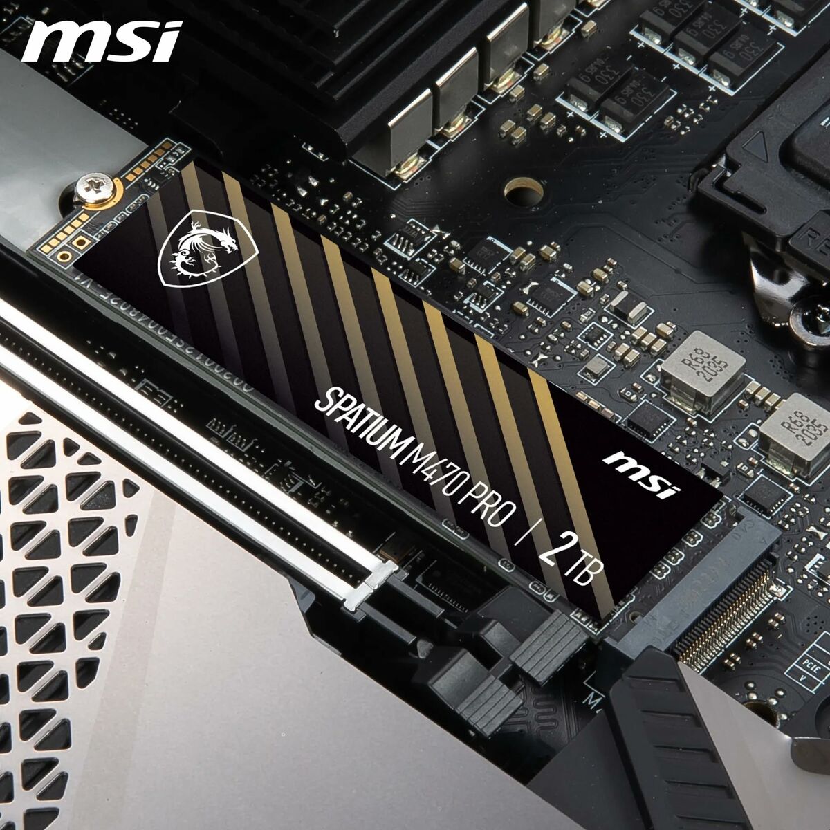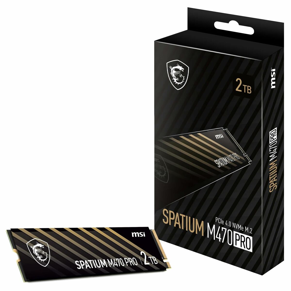 The MSI SPATIUM M470 Pro SSD is a high-speed, large-capacity solid-state drive designed for advanced users who demand superior performance from their systems. This model uses the PCI Express 4.0 standard via an M.2 2280 interface, enabling read speeds of up to 6000 MB/s and write speeds up to 5000 MB/s, significantly reducing application load times and large file transfers. With a capacity of 2 TB, it offers ample space to store software, games, documents, and other content without compromising performance. Its compact, modular form factor makes installation easy in compatible PCs and laptops, while its black design adds a subtle, professional look inside the system. As an NVMe SSD, it delivers very low latency and improved energy efficiency compared to traditional hard drives, resulting in smoother and quieter operation. The MSI SPATIUM M470 Pro is aimed at professionals and hardware enthusiasts who need fast, reliable storage capable of handling demanding workloads without sacrificing system integrity or stability. In short, this SSD combines cutting-edge technology with large storage capacity to meet the needs of users seeking speed and efficiency in their computing devices.