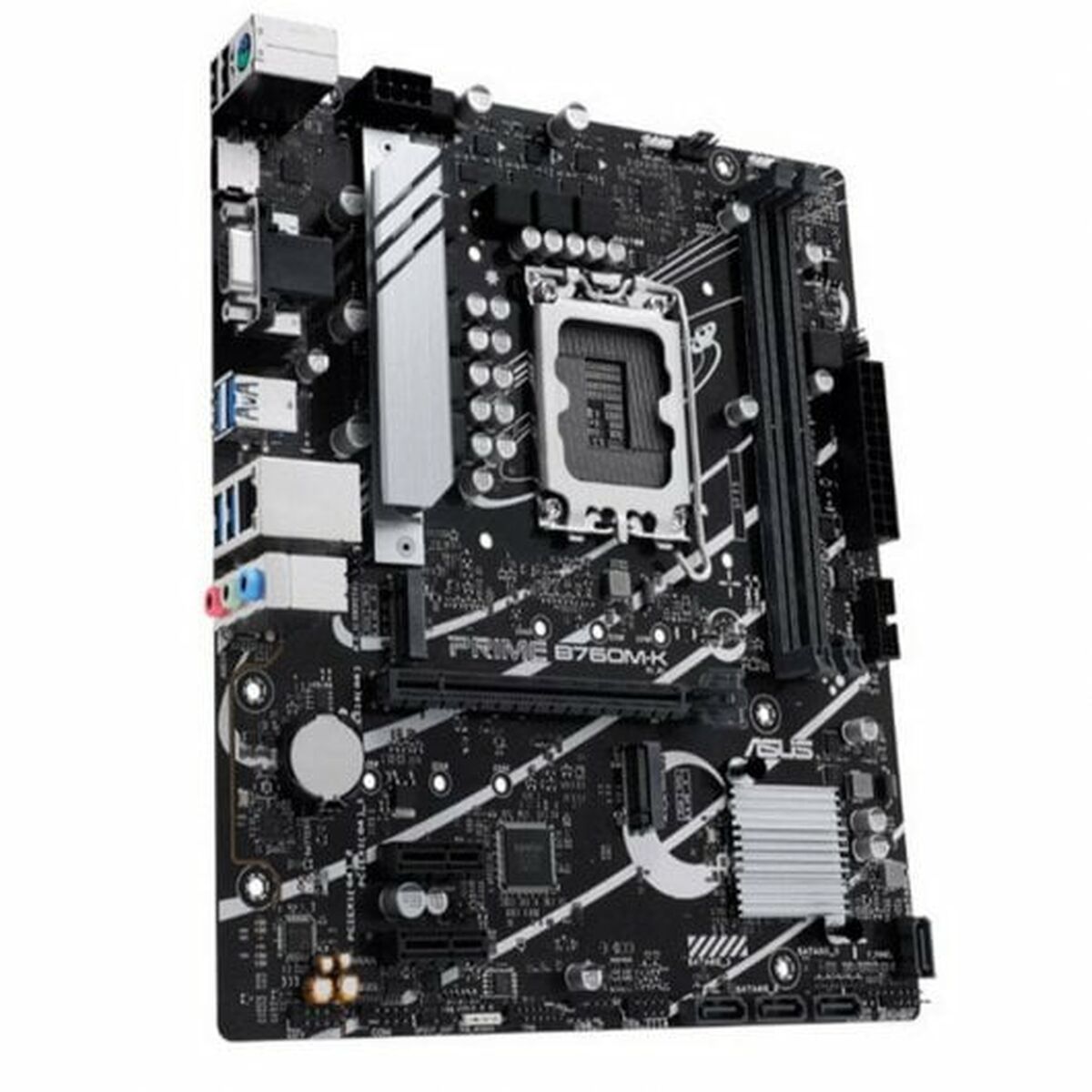 The Asus PRIME B760M-K motherboard is a robust and versatile solution designed for MicroATX systems requiring maximum compatibility and efficient performance. Equipped with the Intel B760 chipset and an LGA 1700 socket, it supports a wide range of Intel processors, including Celeron, Pentium Gold, Core i3, and Core i5 models, making it ideal for setups from basic offices to compact workstations. This motherboard features support for DDR5 SDRAM memory with a maximum capacity of 96 GB via DIMM slots, ensuring fast and smooth multitasking and demanding workloads. For audiovisual connectivity, it includes VGA and HDMI video outputs, facilitating connection to both modern and traditional monitors for various uses. Its storage options stand out with a combination of 4 SATA III ports and 2 M.2 slots, compatible with HDD and SSD drives, plus RAID 0, 1, 5, and 10 arrays to optimize data security and speed. Network connectivity is supported by a high-speed 2.5 Gigabit Ethernet interface, suitable for environments requiring fast and stable data transfers. Complementing its ports are multiple USB options, including 5 USB 3.2 ports for high-speed peripherals and several USB 2.0 ports, along with PS/2 ports for legacy devices. Its Micro ATX form factor allows easy installation in compact cases without sacrificing functionality or expansion. In summary, the Asus PRIME B760M-K is a well-balanced motherboard designed for users seeking reliable compatibility with the latest Intel processors and current connectivity and storage technologies, all in a compact and efficient format.